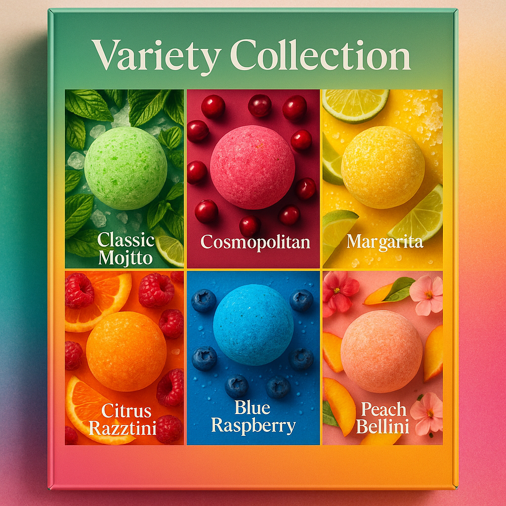 No more chasing ingredients or hiring bartenders. Just drop a Cocktail Bomb into sparkling water and watch it fizz into a delicious drink. Add a splash of your favorite spirit—or keep it alcohol-free. It’s your drink, your way.