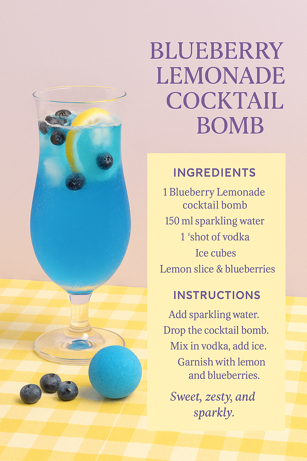 A little tart, a little sweet, and a lot of sparkle. The SipBomb's Blueberry Lemonade Cocktail Bomb blends juicy blueberries with zesty lemon for a vibrant fizz that awakens the senses. It’s a playful twist on a summer classic—made to refresh, uplift, and impress.