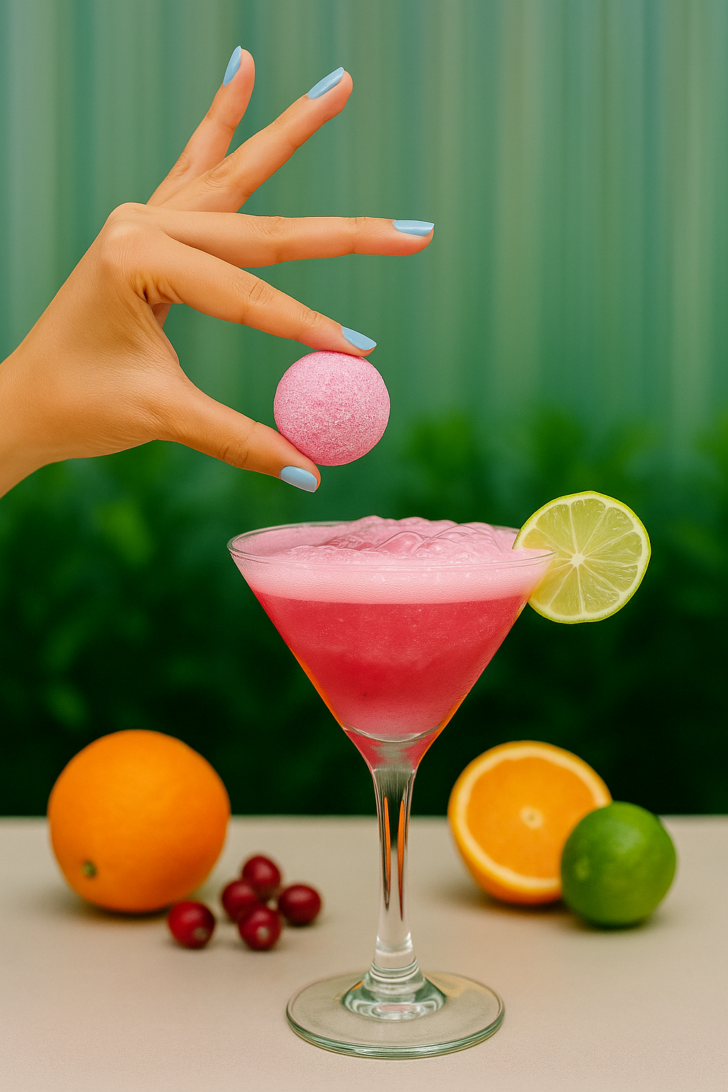 Elegant, modern, and always in style. The SipBomb's Cosmopolitan Cocktail Bomb blends cranberry, lime, and a hint of orange zest for a bubbly take on the iconic Cosmo. It's a stylish sparkler—perfect for polished nights and powerful moods.
