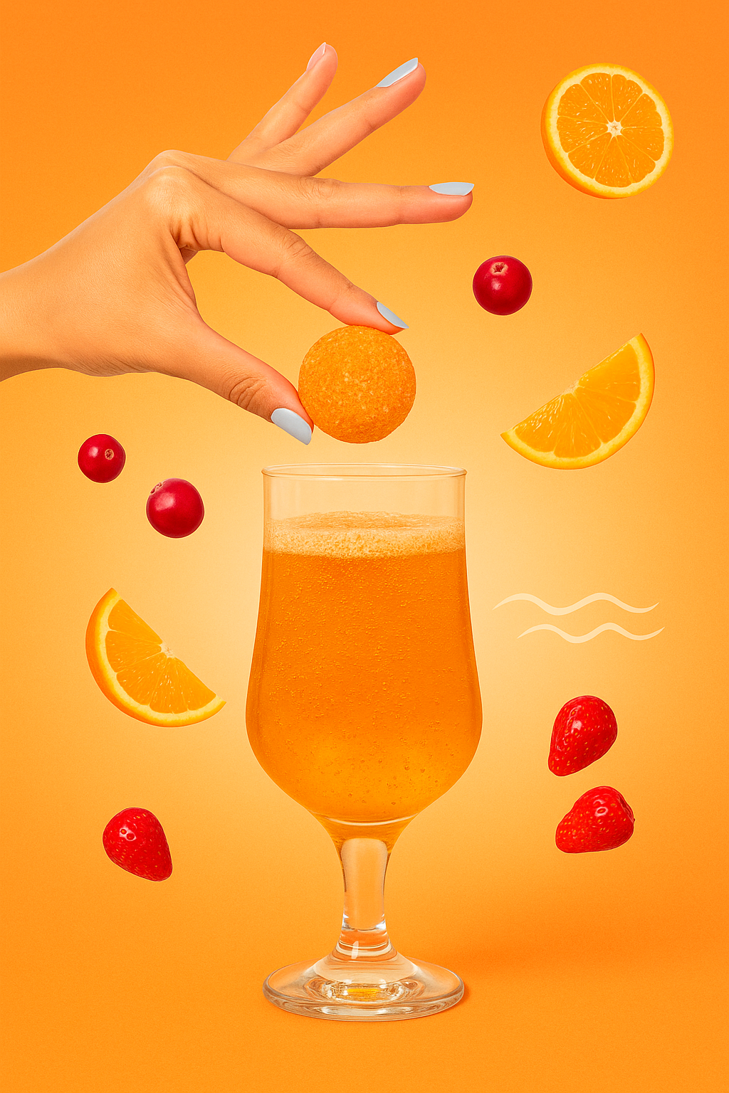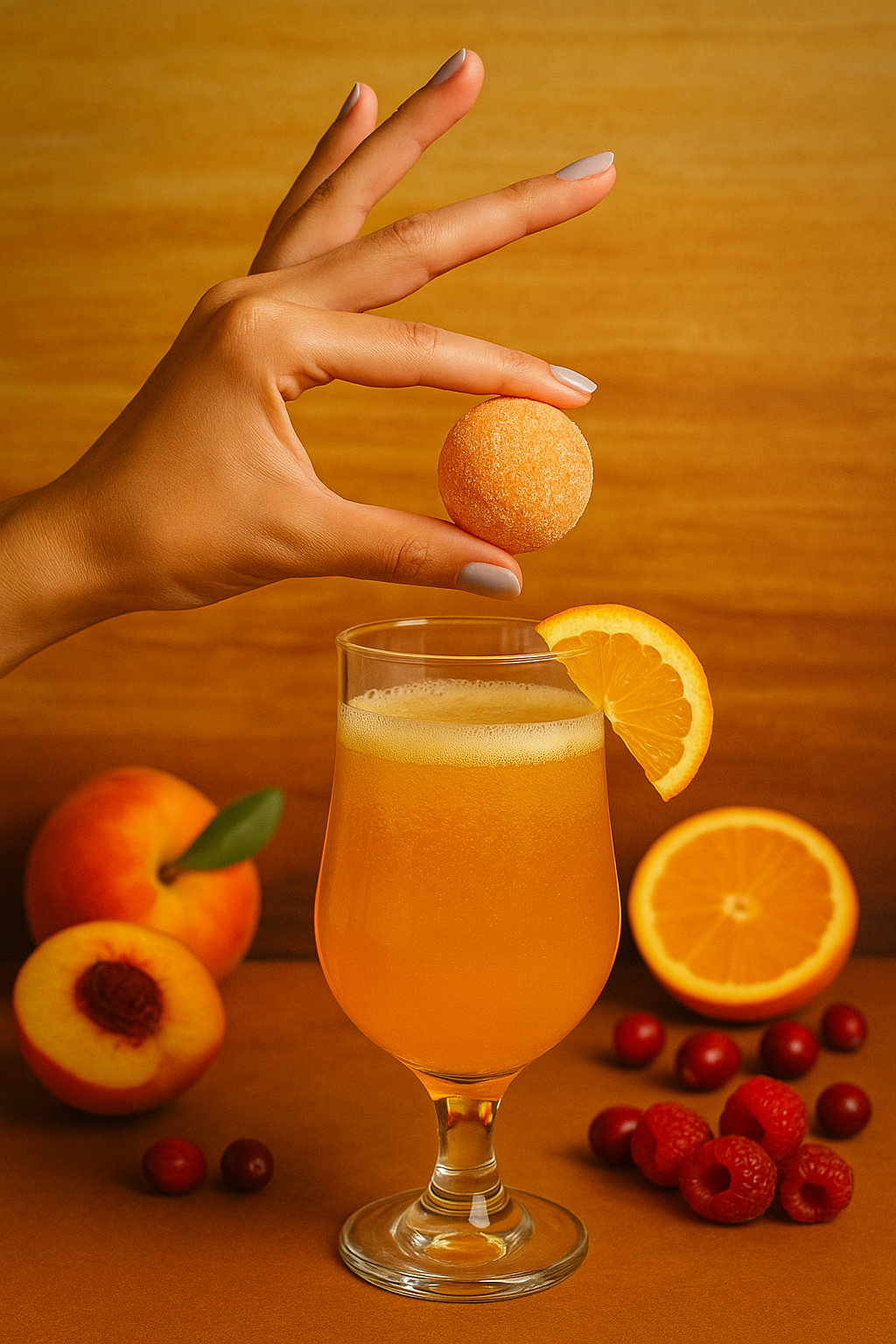 Peach + cranberry + citrus spark + a dash of fun
